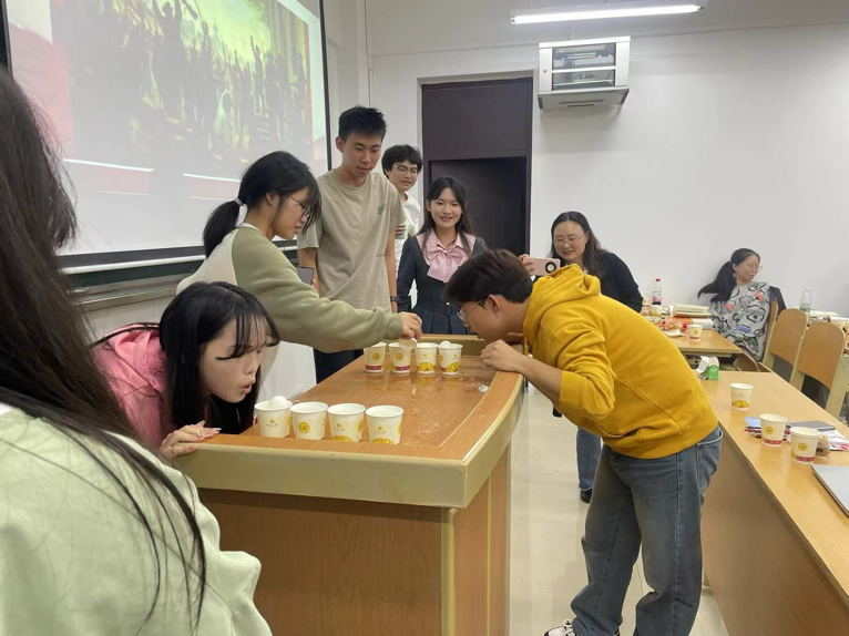 为了增强团队协作能力,当晚还特别增设了一个名为“四渡赤水”的乒乓球过水游戏。在这个游戏中,同学们需要分成四个小组,每组派出四名同学接力将乒乓球从一列四个装了水的杯子中依次吹气,直至吹到最后一个杯子中。要求在保证乒乓球不掉落的情况下,快速完成任务。这个游戏不仅考验了个人的技巧,更重要的是促进了团队之间的沟通与合作,使同学们深刻体会到团结协作的力量。