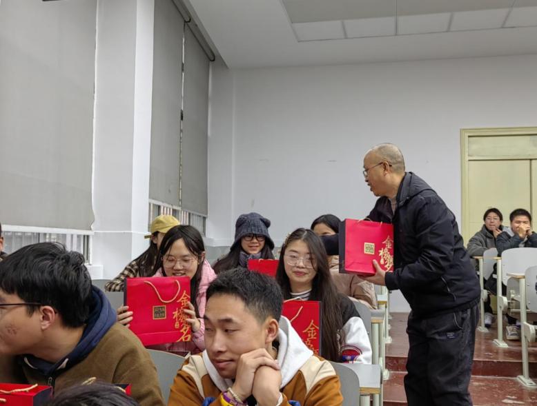学子分发考研暖心加油包。小小的盒子里承载了学院对于考研学子满满的关怀,为同学们送上美好的祝福与期盼。