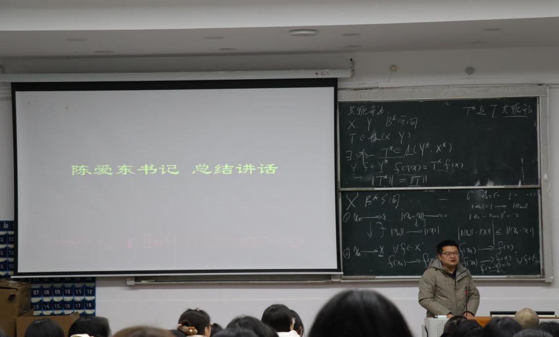 陈爱东在讲话中强调,同学们要坚持梦想,砥砺前行;要见贤思齐,获得动力;要“重结果更重过程”,成为更好的自己。最后他鼓舞同学们要相信“星光不负赶路人,时光不负有心人”,并祝愿大家能够取得好成绩。