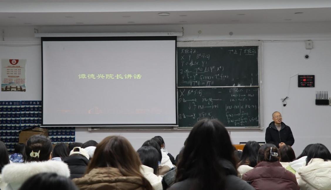 谭德兴为考研学子做考前指导。他表示,老师看到同学们认真备考的状态感到欣慰。他勉励大家要坚定信念,勇往直前,不畏考、不弃考;要熟悉题型,注重答题方法;要注意锻炼身体,做好防寒保暖,照顾好自己。