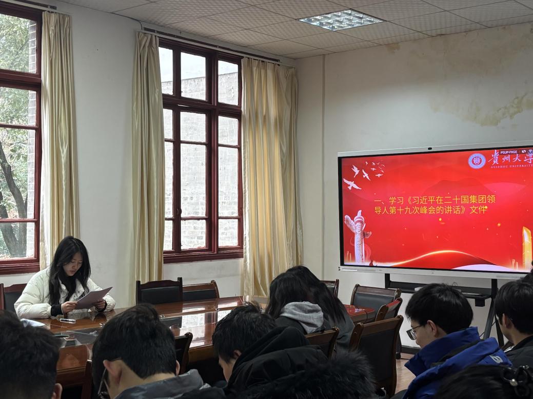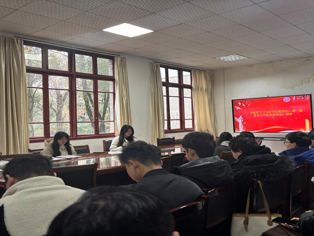 20241220日,共青团贵州大学ledong乐动(中国)体育官方网站研究生总支部委员会在人文楼204教室组织开展“一带一路新篇启,战略自信勇担当”主题溪山习政理论学习活动。2024级研究生参加此次学习,活动ledong乐动(中国)体育官方网站研究生团总支书记王怡主持