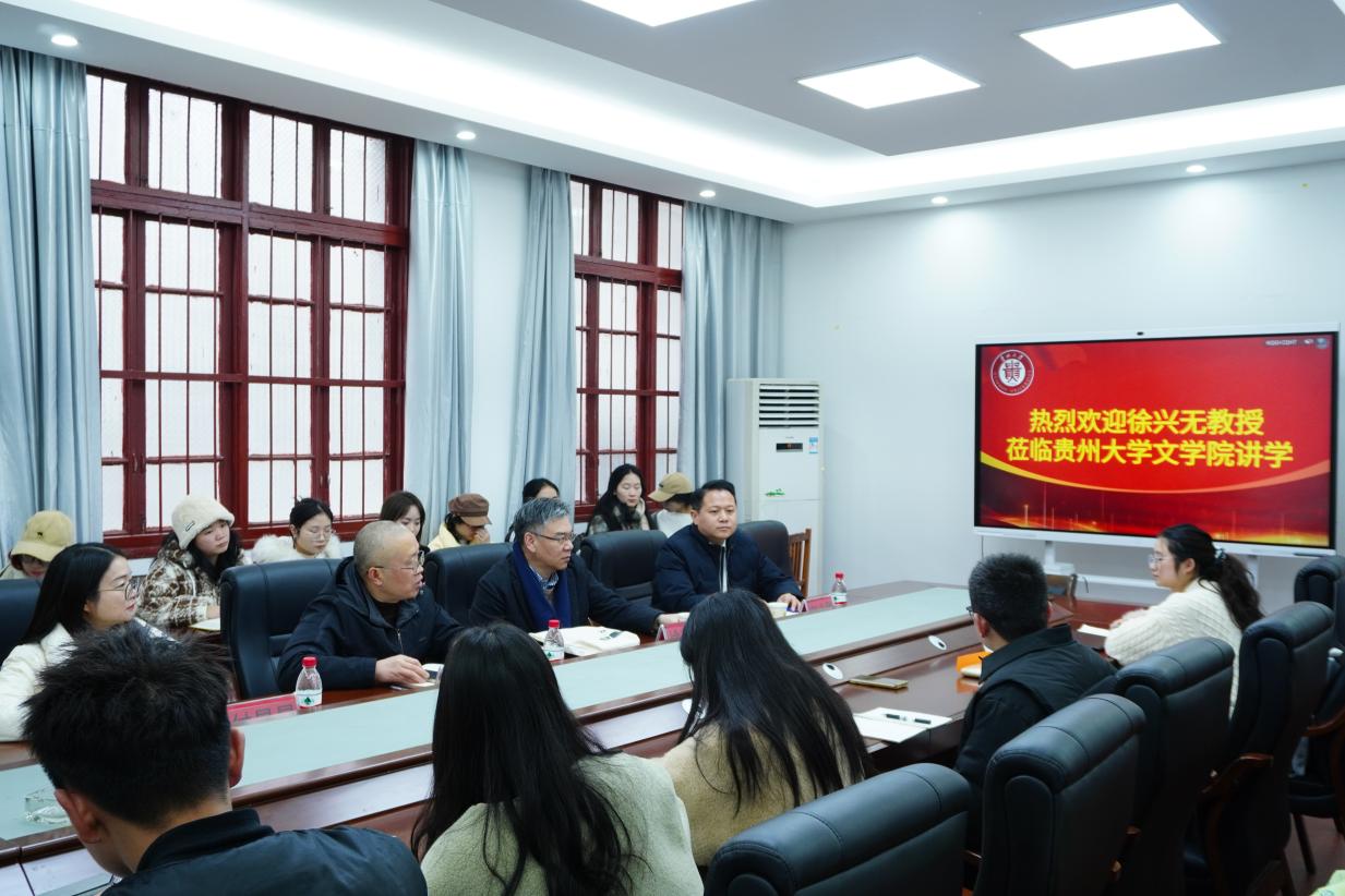 2024年12月28日下午,由贵州大学人文社科处主办,贵州大学ledong乐动(中国)体育官方网站承办的贵州大学总第998期“溪山论道·文科讲坛”(2024年第72期)在贵州大学ledong乐动(中国)体育官方网站104会议室举行。本次讲座邀请南京大学人文社会科学高级研究院院长、教授、博士生导师徐兴无进行讲授,贵州大学ledong乐动(中国)体育官方网站院长谭德兴担任学术讲座主持人,ledong乐动(中国)体育官方网站副院长赵永刚、ledong乐动(中国)体育官方网站教师付星星以及ledong乐动(中国)体育官方网站部分硕士研究生参加。