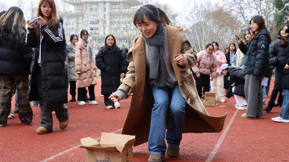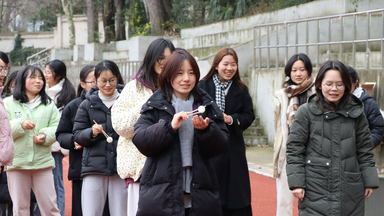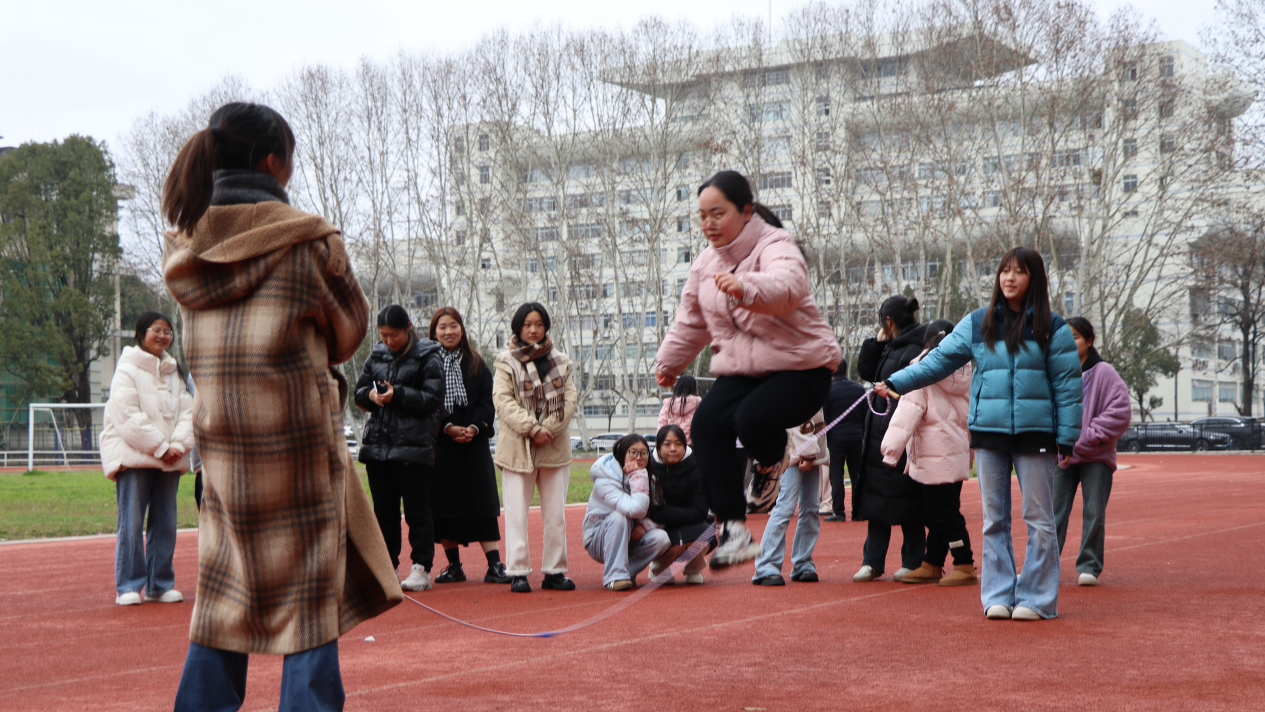 活动现场春意融融、欢声笑语不断。跳大绳、筷子夹乒乓球等趣味项目依次展开,既考验技巧与协作,也展现了女同学们的青春活力。