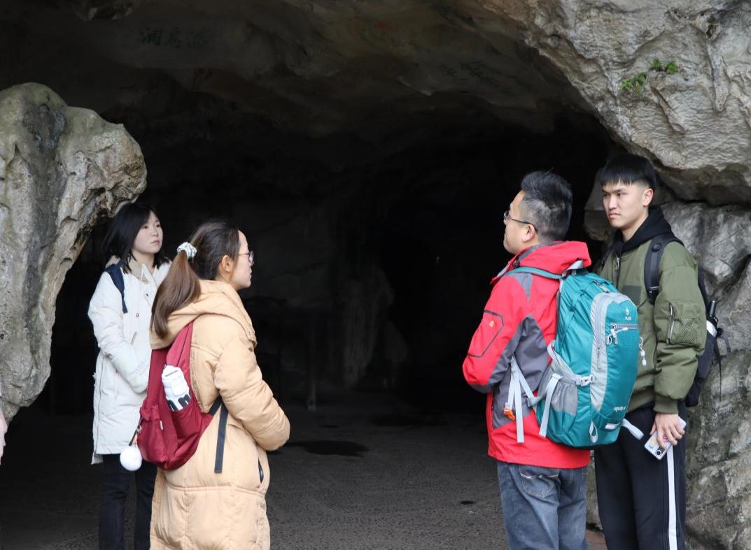 调研行程第二天,实践队深入修文县阳明文化园,探访园区内阳明洞、阳明文化展示区等文旅点,纵深了解阳明文化园在文旅融合方面的现状与潜力。调研过程中,实践队员秉持游客、调研人员、文旅从业者的多元身份视角,与各工作人员、游客进行深入的交流和互动,切实感受园区构建产业生态闭环的努力,了解游客们的文化需求与精神追求。据悉,园区已形成“研学+康养+文创”产业矩阵,2024年接待游客827万人次,带动消费2481万元。园区内,一位安徽游客感慨:“阳明文化内涵深邃,潜移默化地重塑了我的生活态度与思考模式。”谈及文化园发展现状,他认为,“当下阳明文化园对外宣传力度不足,外地人不了解,可以利用互联网平台的传播优势制作系列短视频,全方位展示文化园的特色景点,吸引更多游客到来。”