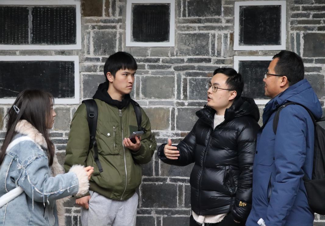 图为知行实践队在阳明祠采访贵州财经大学研究生 实践队员杨欣子怡摄
