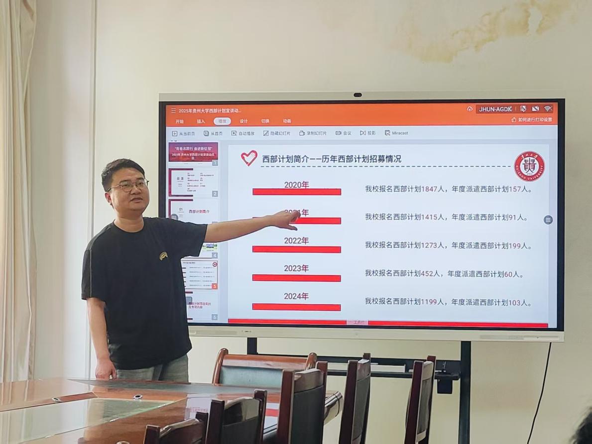 会上,曹家鹏详细介绍了报考“西部计划”的相关政策、条件和要求。他勉励大家要志存高远、脚踏实地,不畏艰难险阻,勇担时代使命,把个人的理想追求融入党和国家事业之中,为党、为祖国、为人民多作贡献。他强调同学们要积极响应国家号召,到西部去、到基层去、到祖国最需要的地方去工作,在艰苦奋斗中锤炼意志品质。