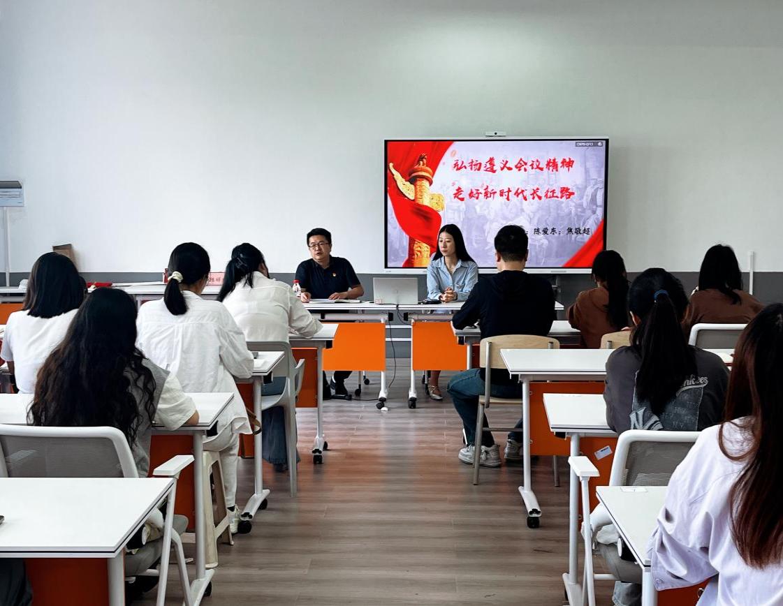 为深入贯彻落实习近平新时代中国特色社会主义思想,引导青年学子传承红色基因、赓续精神血脉,5月13日下午,我院于逸夫楼512教室举办“理论宣传二人讲”活动。学院党委书记陈爱东与马克思主义学院团委书记、研究生党支部书记焦敬超共同围绕“弘扬遵义会议精神 走好新时代长征路”主题展开宣讲,我院全体本科生党员参与学习。